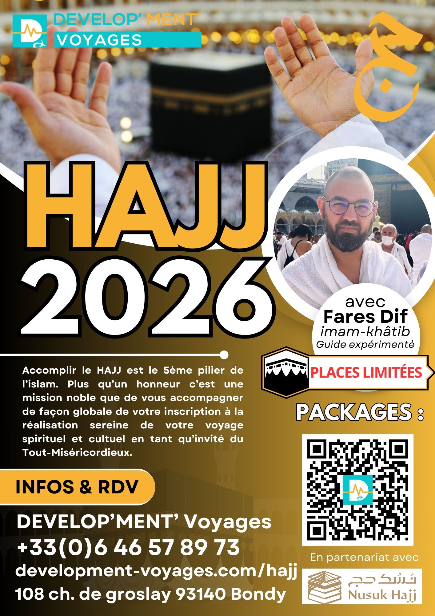 Nos packages sélectionnés pour le HAJJ 2026 seront bientôt disponibles ! Nous vous remercions d’avoir choisi notre équipe pour votre accompagnement.